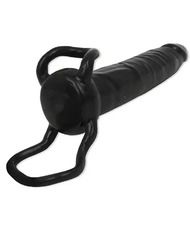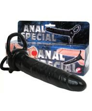Этот тонкий фаллоимитатор черного цвета может быть присоединен двумя петлями на пенис и яички для двойного проникновения во влагалище и анус. Можно также использовать отдельно, как анальный фаллос.