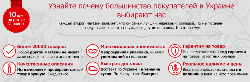 Если вы не знаете, что выбрать, вам всегда будет рад наш консультант на сайте. Опытный специалист ответит на все ваши вопросы, даже если они возникнут после покупки товара. И у нас бесплатная доставка! Не только по Киеву, но и по всей территории Украины. Мы заботимся о наших клиентах и хотим, чтобы они платили только за удовольствие. А все технические расходы мы берем на себя.
