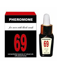 Эссенция Pheromon 69 for men - это уникальная аромакомпозиция эфирных масел-афродизиаков и природного эффективного феромона-аттрактанта - черного мускуса, доминантного маркера, который обладает эрогенными свойствами, стимулирует сексуальное желание и влечение.