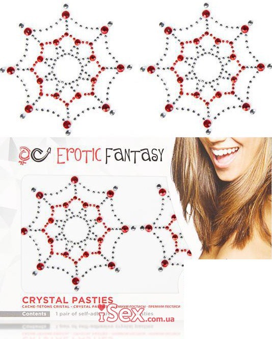 Пэстисы (наклейки на грудь) из черно-красных кристаллов Spider