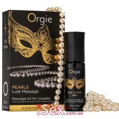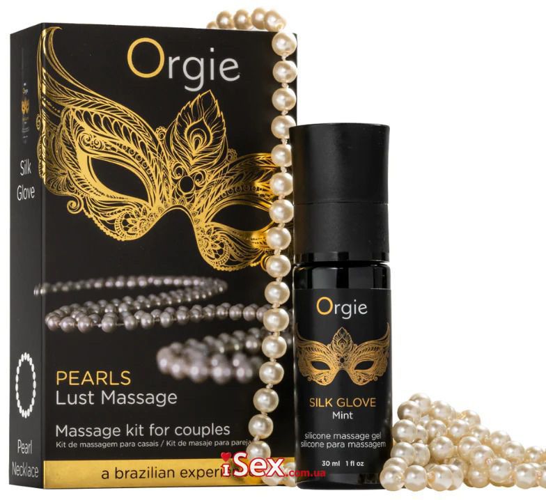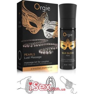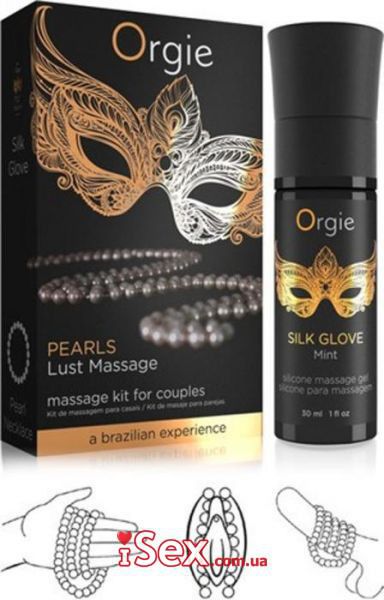 В комплект входят: массажный гель Orgie Silk Glove Mint, жемчужное ожерелье, инструкция массажа Состав: циклопентасилоксан, диметикон/винилдиметикон кроссполимер, эфирное масло японской мяты
