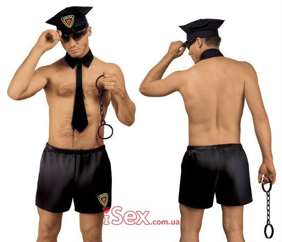 Описание товара Мужской комплект ПолицейскогоМужской комплект Полицейского: трусы-шорты, галстук и кепка. Состав: 100% полиэстер.